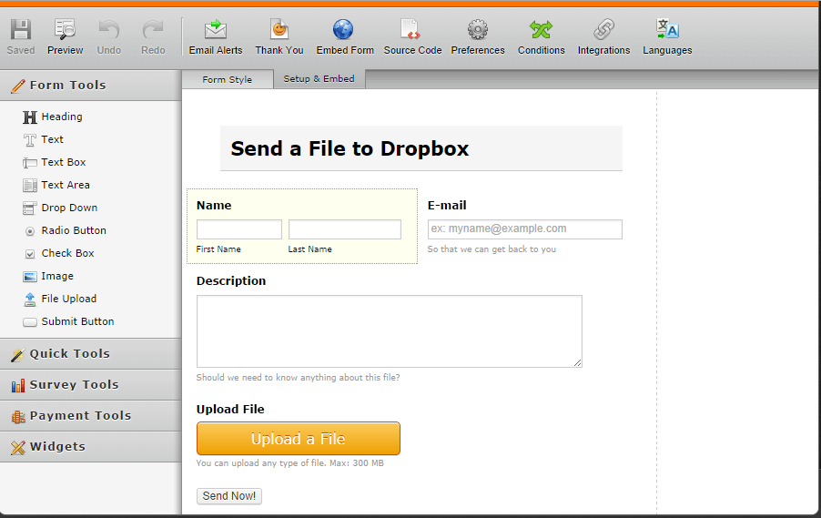 - Click the “Create a Dropbox Form” button.