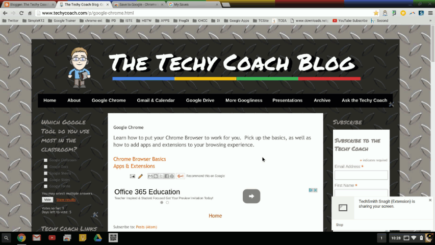 Finally, another option for optimizing browsed sites is the Save to Google extension. This Chrome Extension allows you to quickly and easily save pages for later viewing. This is great if you are researching a project and need to file away a page for later. It’s also great as an alternative to Bookmarks, if you are a visual person. The extension is available in the Chrome Web Store. Once installed, you simply click on the extension when visiting any page you want to save. You can also add Tags to your saved pages.