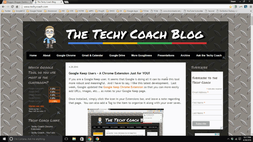 Do you have a number of websites that you visit every day for work or school that you access frequently? Rather than bookmark them and open them every day, why not set them as your Startup Page. To set a Home Page on Chrome, click on Settings. In the On Startup section, choose Set Pages. If you already have your preferred pages/tabs open on your browser, you can choose Use Current Pages. Then click OK. From there forward, Chrome will open to the tabs you have saved as Startup Pages.