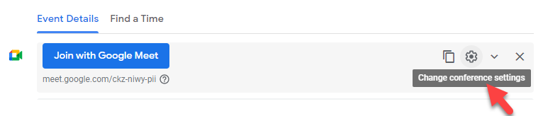 - Click on the Gear next to the Google Meet button